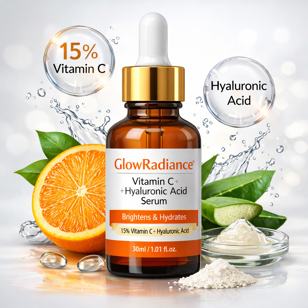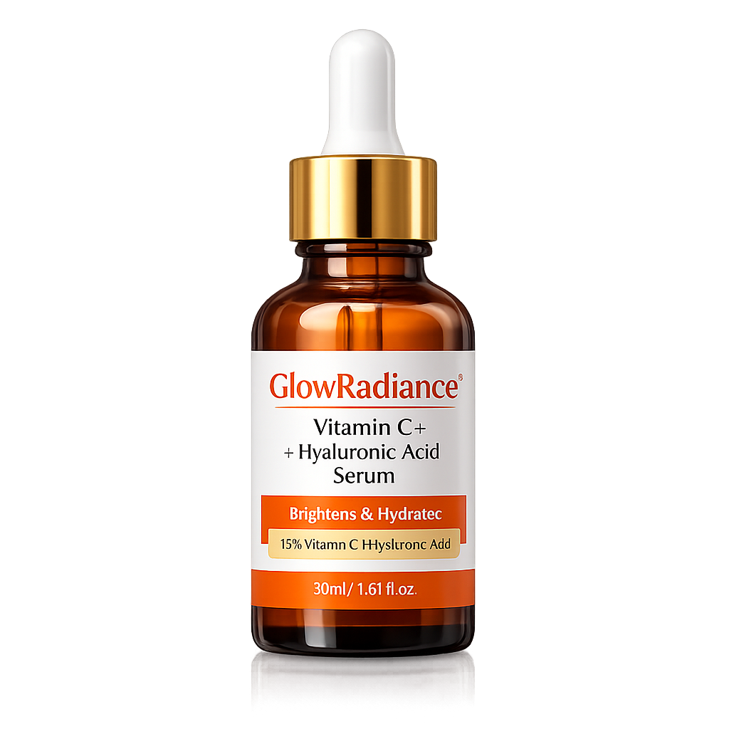 Bring back your skin’s natural glow with GlowRadiance Vitamin C + Hyaluronic Acid Serum — a powerful daily treatment designed to brighten, hydrate, and improve overall skin texture. Formulated with 15% Vitamin C, this advanced serum helps fade dark spots, reduce pigmentation, and protect skin from environmental damage caused by pollution and UV exposure.